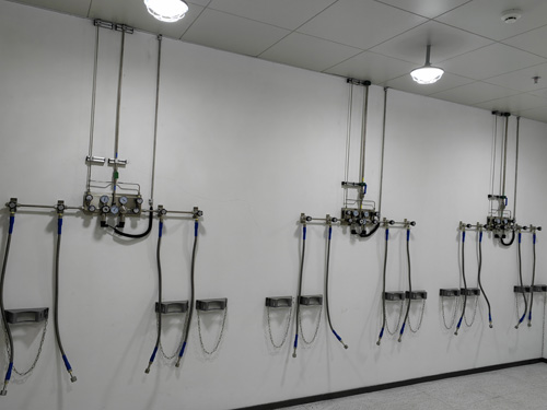 8.氣瓶間內的混合氣體氧氣瓶與的負壓調接器直接利用SS316L高電壓金屬質排水管銜接無滲透性。高電壓排水管為剛性排水管,以以確保銜接的更便利性。并自導安全防護鋼纜,防治極端化情況下下,氧氣瓶閥磨損等后果帶來了的高電壓“抽鞭”傷亡事故。的負壓調接器與管網的銜接措施為雙環卡套。